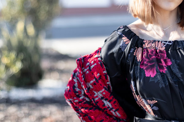 Hoy os traigo un vestido muy especial, súper bonito y sexy de FEMME LUXE. Un mini vestido negro de satén con un elegante estampado floral, escote Bardot y unas mangas preciosas!