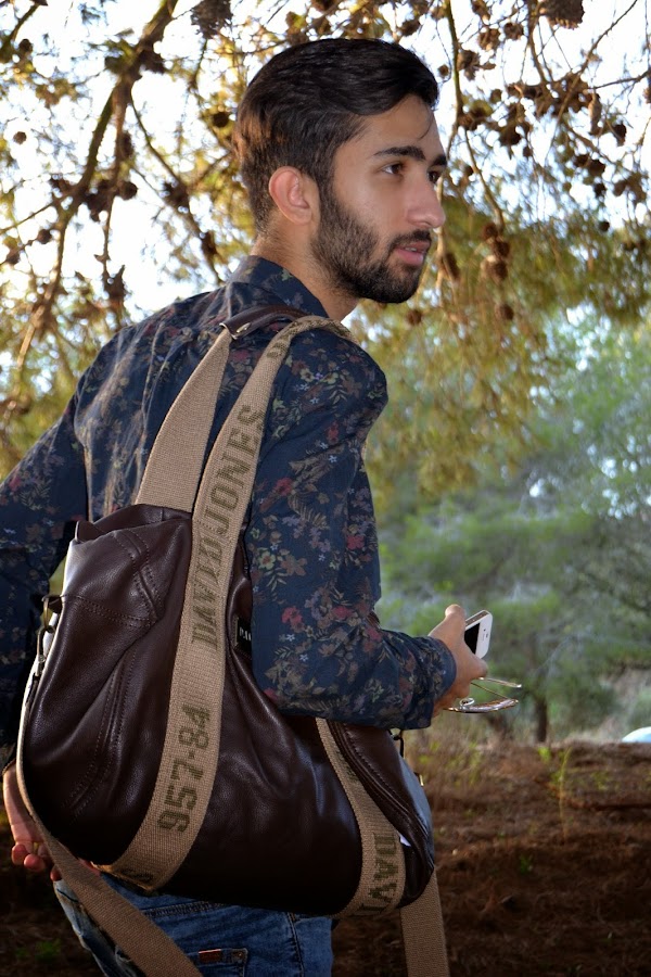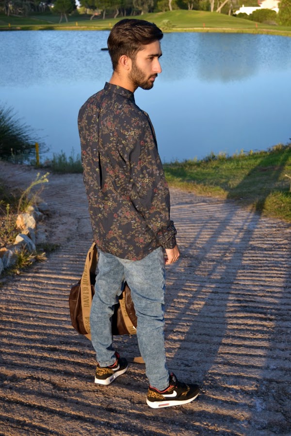La camisa puede ser sencilla si la sabes combinar, yo lo hice dándole un poco de contraste en los tejanos claros y con unos sports Nike (que me encantan) con un delicado print de leopardo del mismo tono de las flores de la camisa. También le añadí al outfit un macuto de Jack and Jones en marrón chocolate y beige.