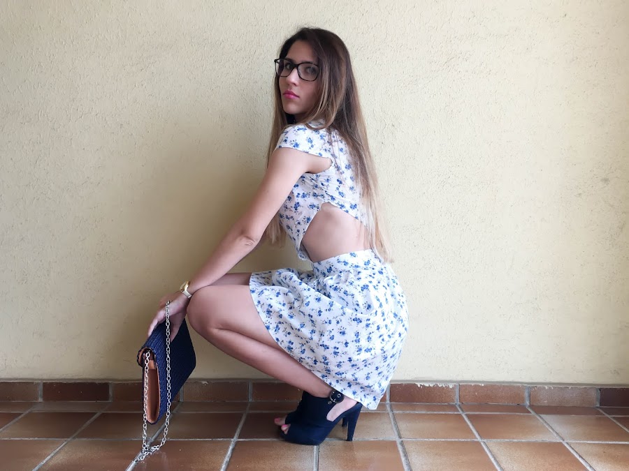Y por qué me ha sorprendido este vestido floral?? Porque aunque me encantó cuando lo vi en su web, aún me encantó más cuando vi cómo quedaba puesto. Es un vestido romántico por su tono blanco con flores azules y a la vez moderno con dos aperturas en los costados que hace que se vea muy sexy!