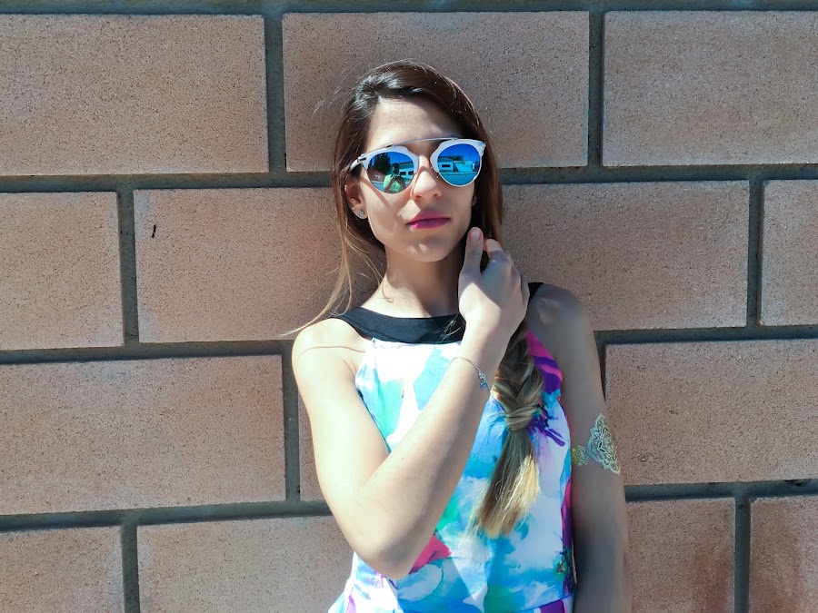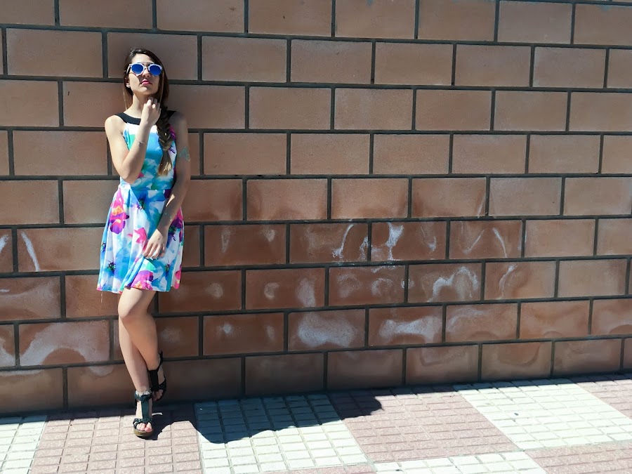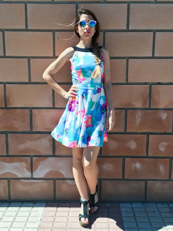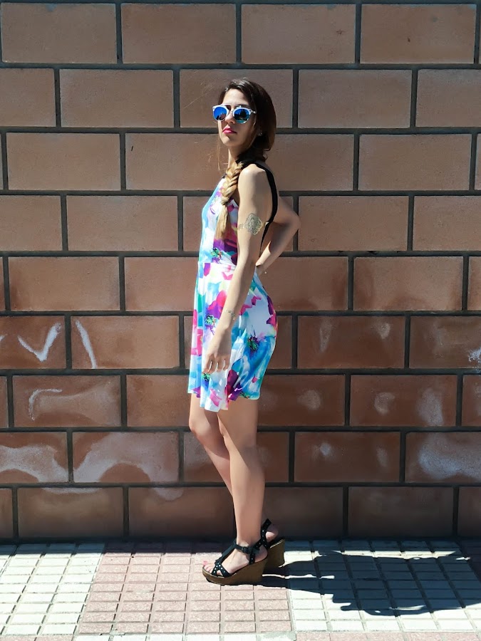 If you want a cheerful dress, this is yours, no doubt !! With a floral pattern super colorful and very cool for the summer. But what I like best of all is their original back! You know that I love backless necklines but this is super original with a black border that makes its colors stand out more !! In addition, I have completed the look with a golden temporary tatoos and a pair of super cool sun!