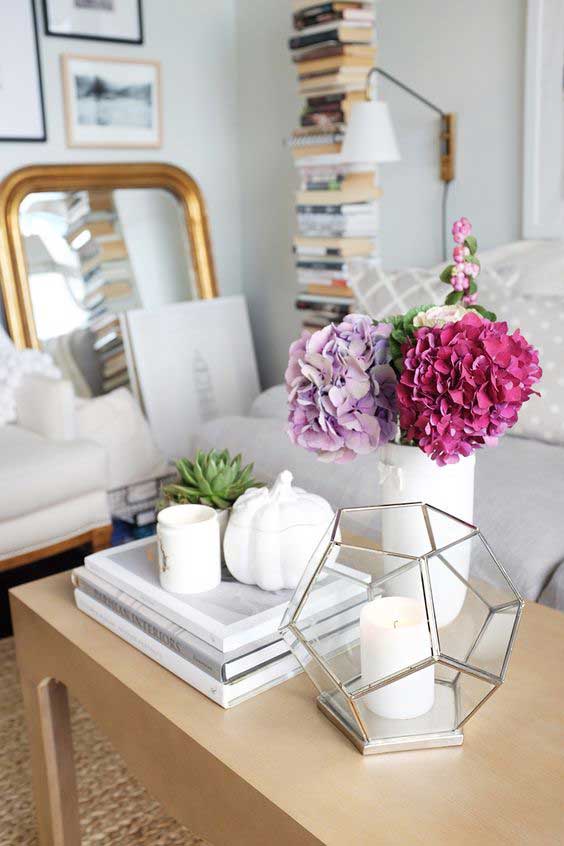En la mesa de centro puede funcionar colocar flores que den un acento de color, algo que le e vida al espacio. Descubre 7 tips para agrandar espacios pequeños.
