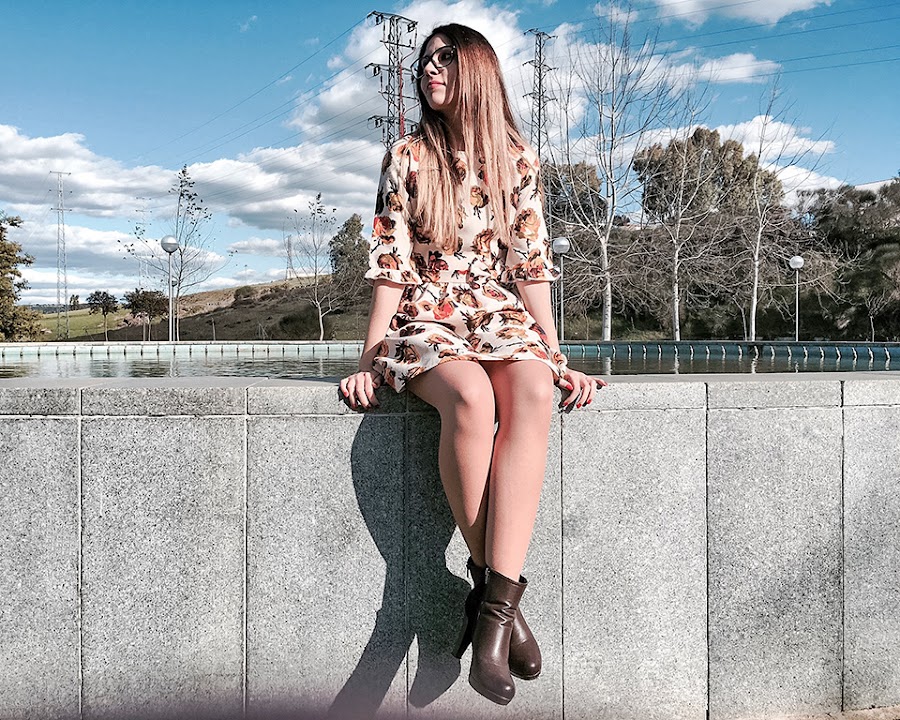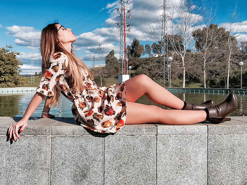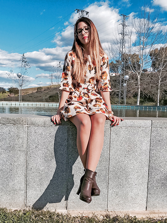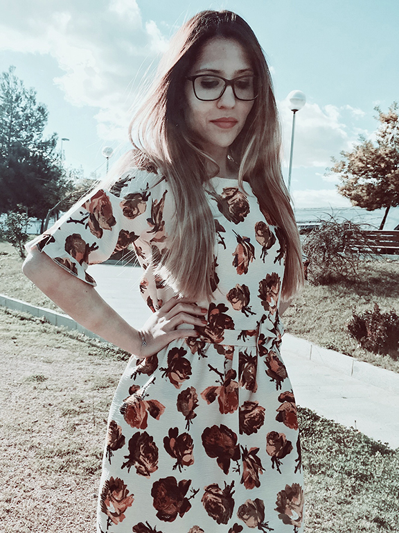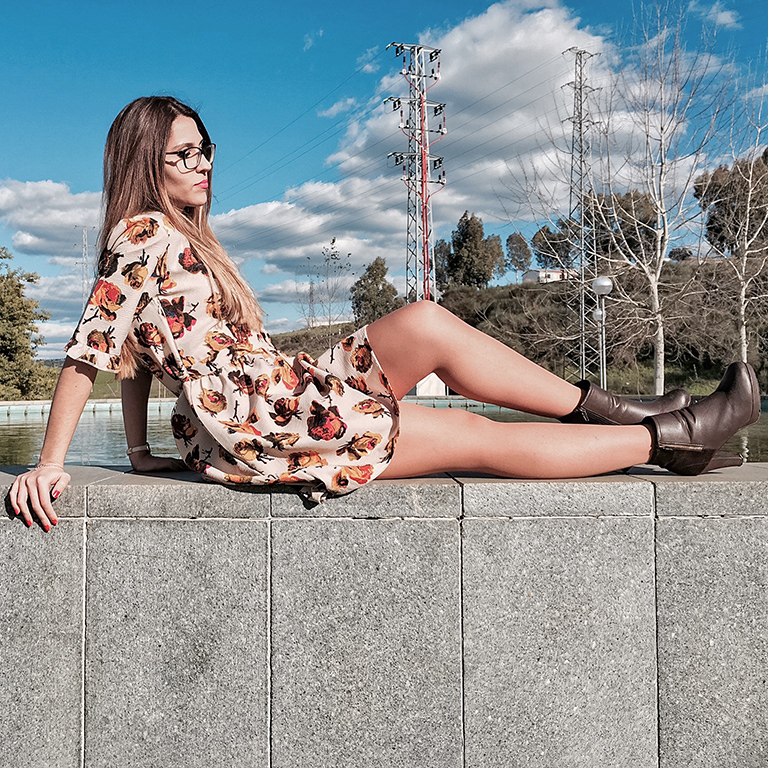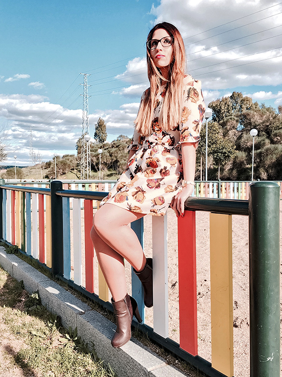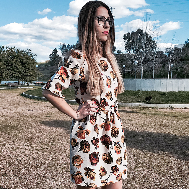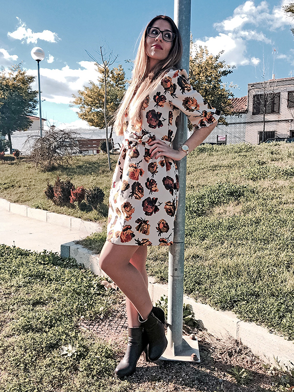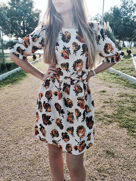 Hoy le damos alegría a este miércoles con un vestidazo de flores en tonos beige, marrones y dorados. Con un corte en la cintura y adornado con un lazo lateral y un vuelo en el filo de las mangas. Además, tiene un toque nostálgico-romántico que me encanta!