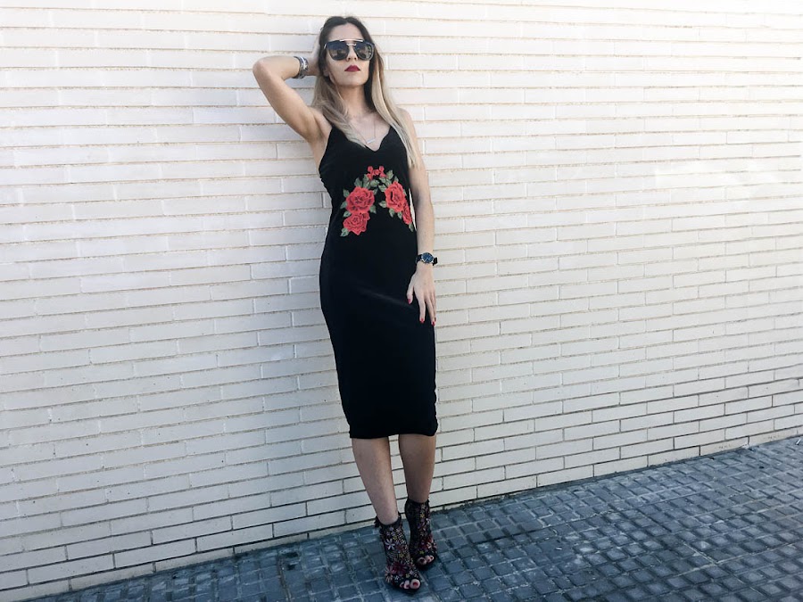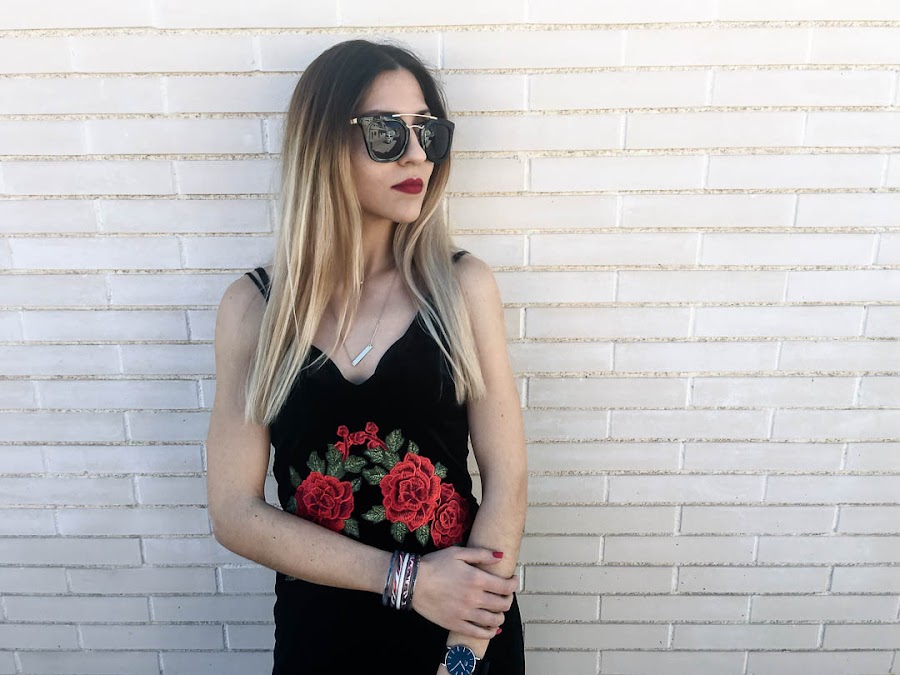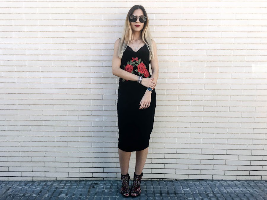 Dos tendencias de esta primavera? Terciopelo y prendas bordadas (tendencias de esta primavera que por cierto, llevan con nosotros desde el otoño pasado). Yo soy una amante de estas dos tendencias, pero y si las juntamos en una sola?? Voila! Un vestido midi negro de terciopelo y un bordado floral en el pecho. Esta tienda me encanta, la ropa es de gran calidad, precios súper económicos y envíos bastante rápidos.