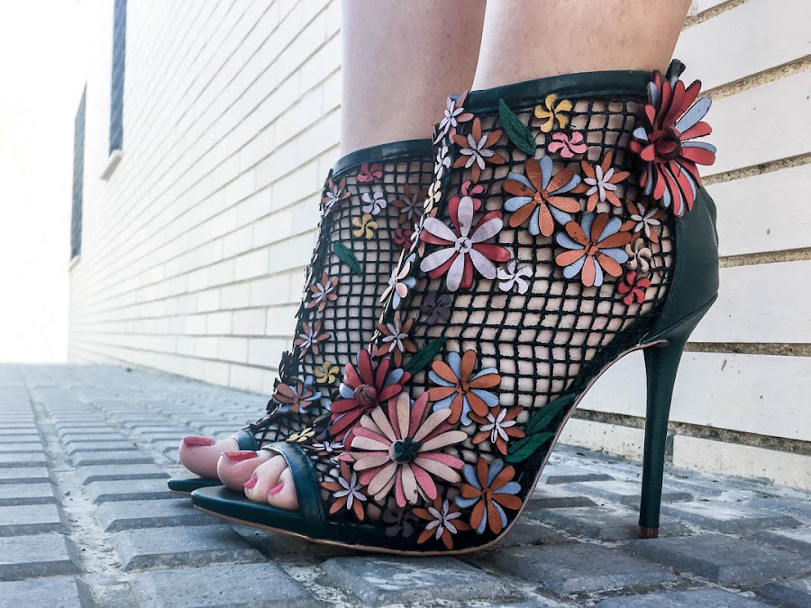 Lo he combinado con unas sandalias de rejilla de color verde y repleto de flores! Os aseguro que con estas sandalias llevas la primavera en tus pies!! Me enamoré nada más verlas en la web de ZARA!