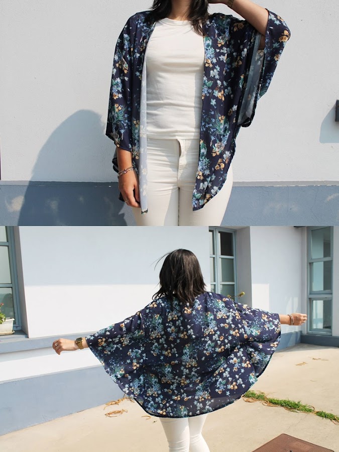 Kimono floral azul marino - Besosdechocolateyfresashop