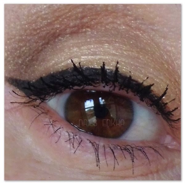 Pensé que la sombra no me iba a gustar al ser dorada pero la verdad que no queda nada escandalosa, como podéis ver en la foto mía es bastante natural y el labial lo mismo.