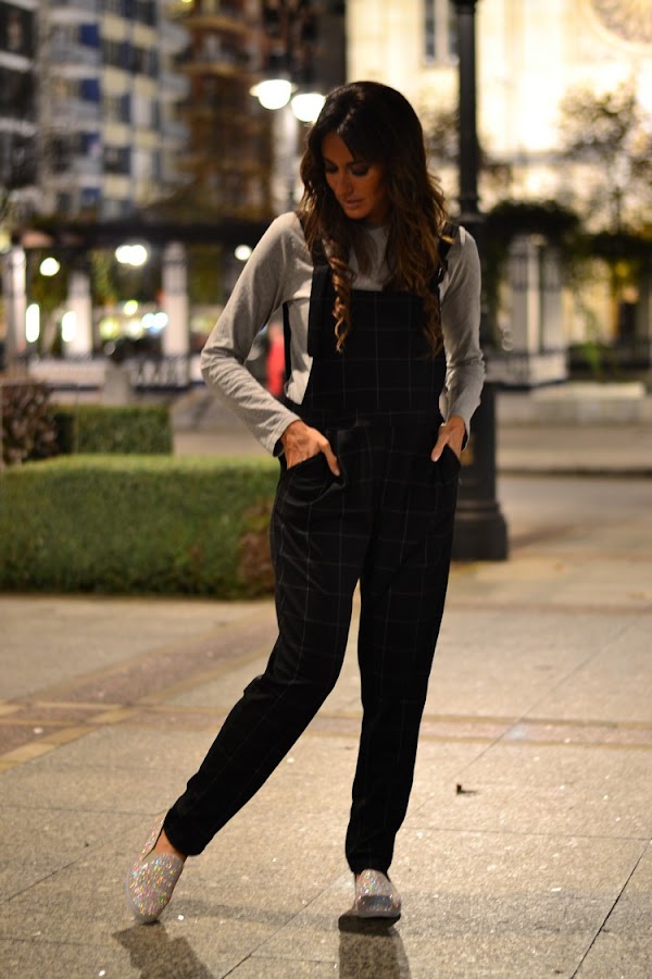 Hoy os enseño este peto casual negro a cuadros como pieza central de mi look. Un flechazo que tuve en Dulcevestir hace unos días, entre otras razones, porque me pareció cómodo, fácil de llevar y, sobre todo, divertido.
