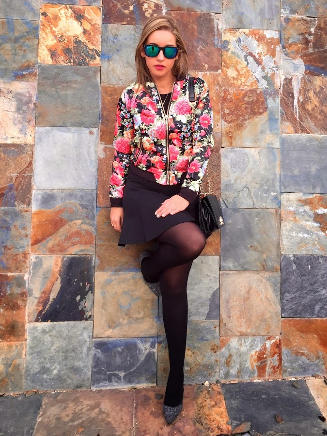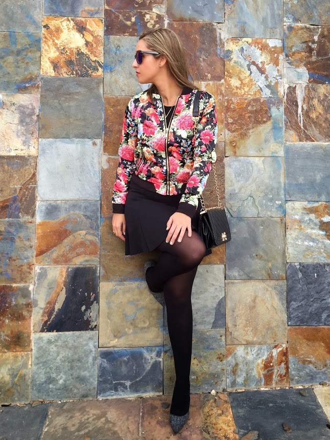 Good night loves! We start a new week, but I"m very optimistic because the next week is Easter. Today I show you my new flowered bomber of Oxygen that it"s perfect for Spring because it"s very colourful. I wore it with a neoprene black skirt, my stilettos of Lovely Pepa for Krack and my favourite bag style Chanel.
