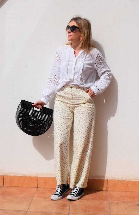 Otro look en tonos blancos, como este día, pero con ligeros toques diferentes en los estampados y tejidos.