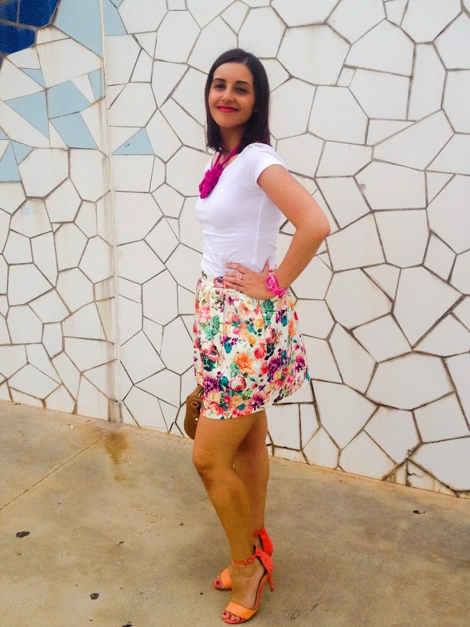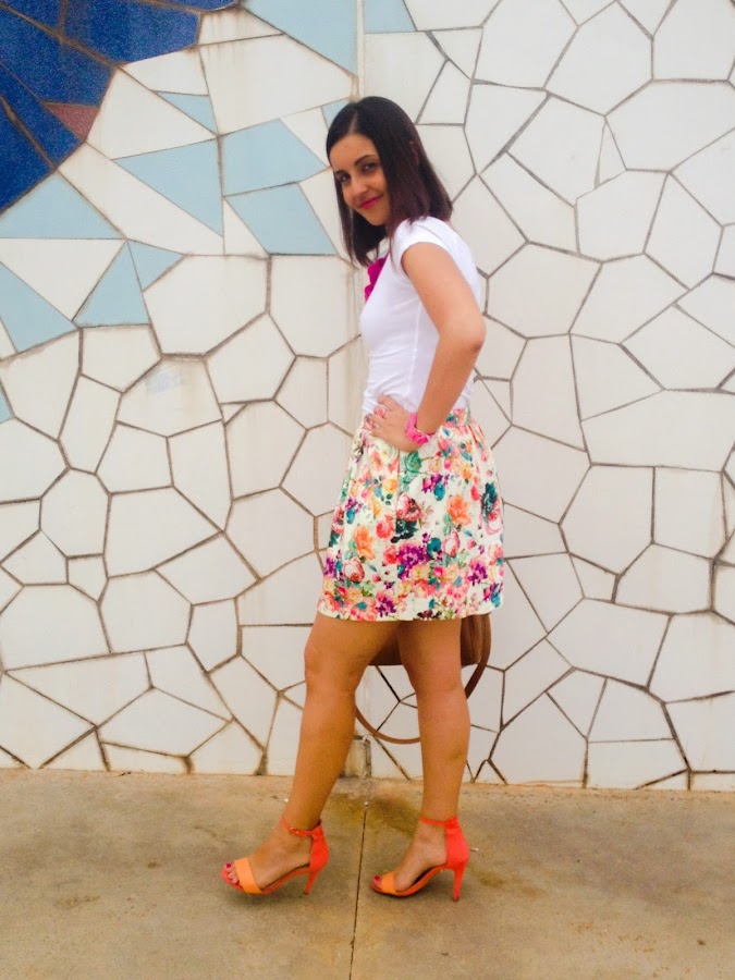 Buenas sweeties! Empezamos nueva semana, y hoy os traigo un look con falda, ya que hace tiempo que no os enseñaba ninguno. Esta falda de estampado floral la combiné con una camiseta blanca, para darle todo el protagonismo a la falda. Me la puse con mis sandalias coral y mi nuevo bolso de Stradivarius. Un look sencillo, pero muy chic.