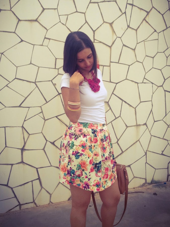a lot of time ago. This skirt of flowered pattern I wore it with a white tee, to give all the protagonism to the skirt. I wore it with my coral sandals and my new bag of Stradivarius. A basic look, but very chic.What do you think about it! Thanks for your visits and comments.