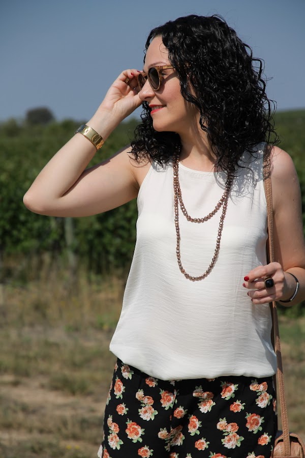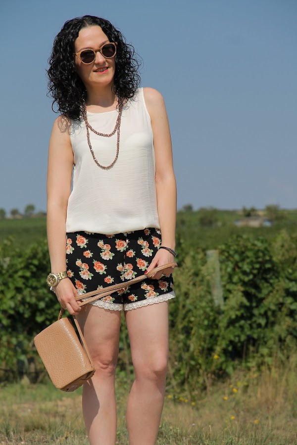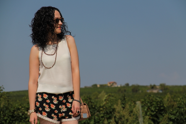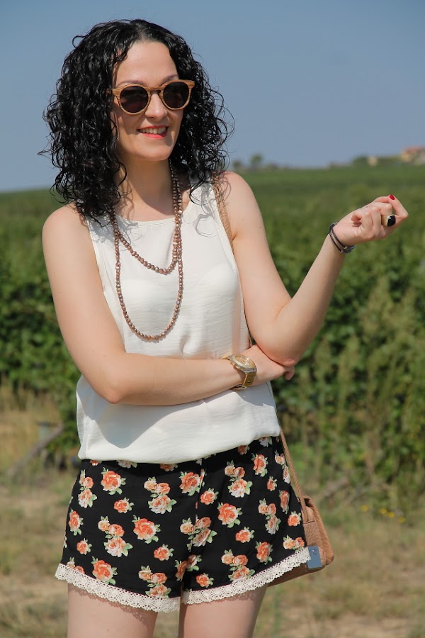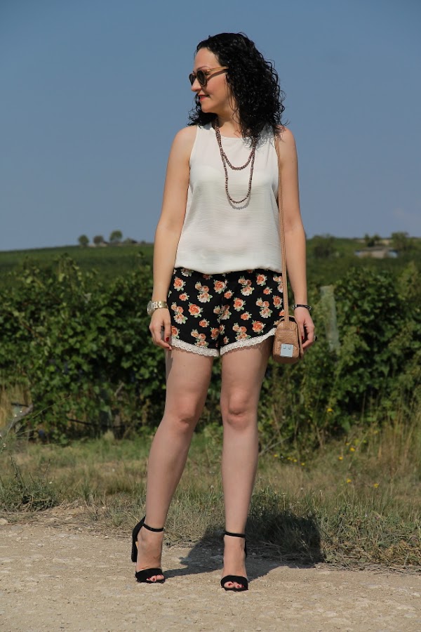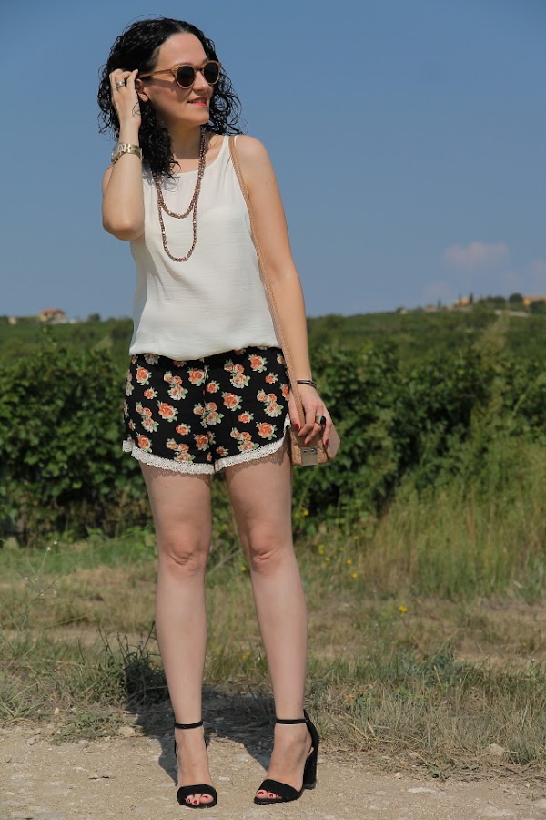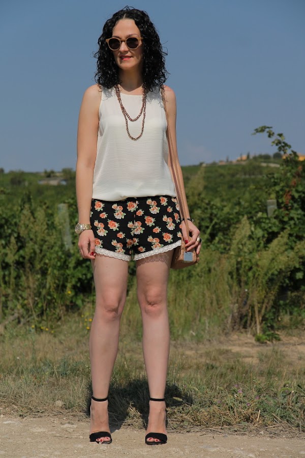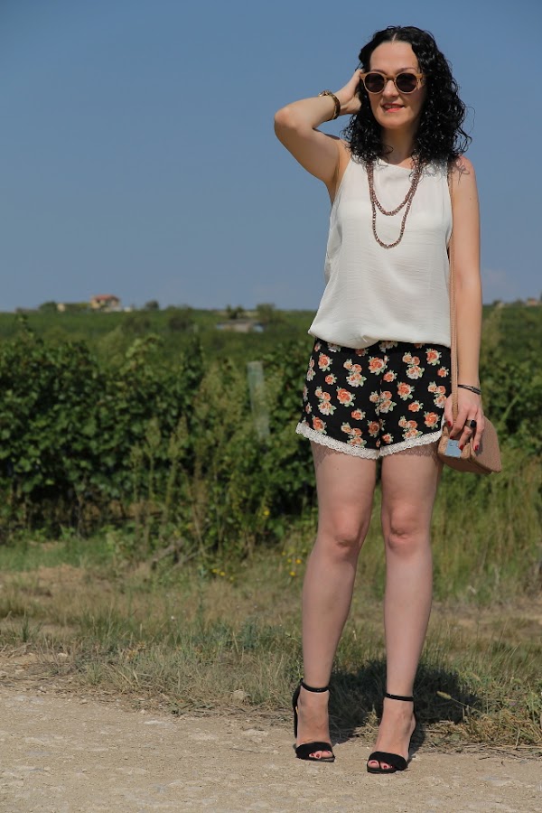 Hace un par de domingos con los amigos disfrutamos de un día de Enoturismo, la verdad que fue un día muy interesante en el que además de probar muy buenos vinos aprendimos más sobre este mundo. Como hacía bastante calor decidí estrenar estos preciosos shorts de flores y encaje que me traje de Japón, a lo largo de los próximos post podréis ver la cantidad de prendas que me traje de aquel país, vi tantas cositas bonitas que era imposible no venirse con algunas de ellas. Los combiné con top básico y mis sandalias preferidas para brindarles todo el protagonismo.