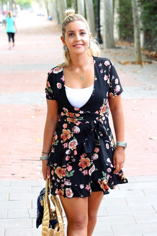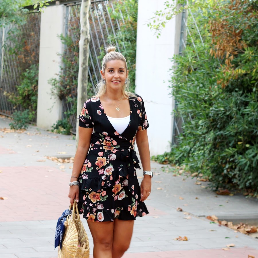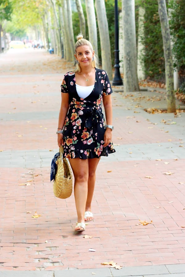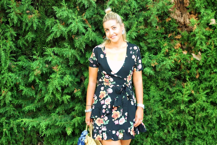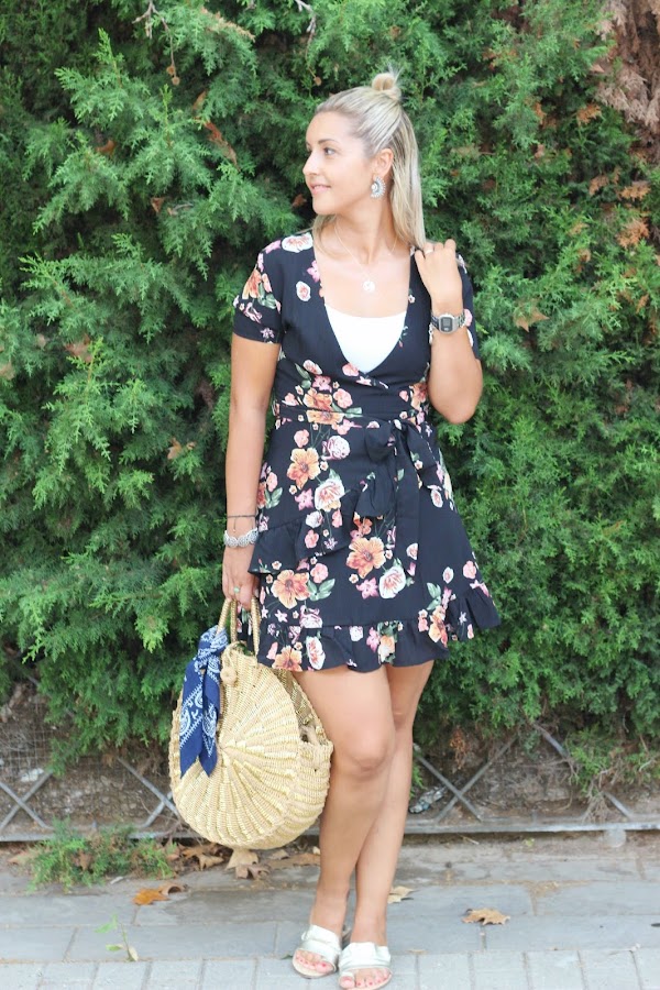 Hoy os traigo un nuevo look super dulce y femenino. En el look de hoy, os enseño mi nuevo vestido cruzado con volantes de Zaful. Me encanta este tipo de vestidos porque me parecen super femeninos. Le añadí un crop top blanco debajo, ya que el escote es demasiado pronunciado. Los accesorios que escogí para el look fueron mi inseparable bolso de rafia redondo y mis nuevas sandalias doradas que encontré super bien de precio en rebajas y me encantaron por el detalle del volante.