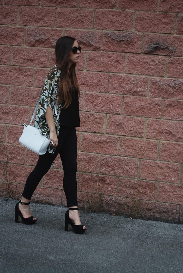 Últimamente me ha dado por el total black con el toque de color en la chaqueta y este es uno de mis outfits favoritos. Salvo el kimono (lo tengo desde hace mucho pero aún no había salido por aquí) y el bolso (compra rebajil), ya habéis visto mil veces el resto de prendas.
