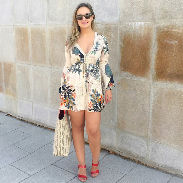 Yo hoy os traigo este mini vestido de Zaful de flores en tonos beige y azules que he combinado con accesorios en tonos rojos. Siempre me ha gustado la mezcla de estos tres colores y la utilizo bastante en mis looks de día.