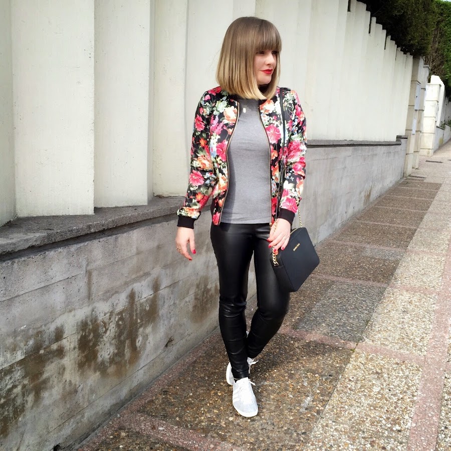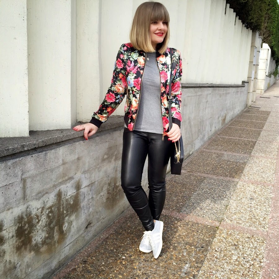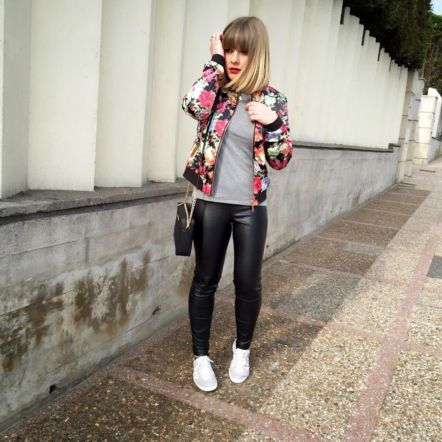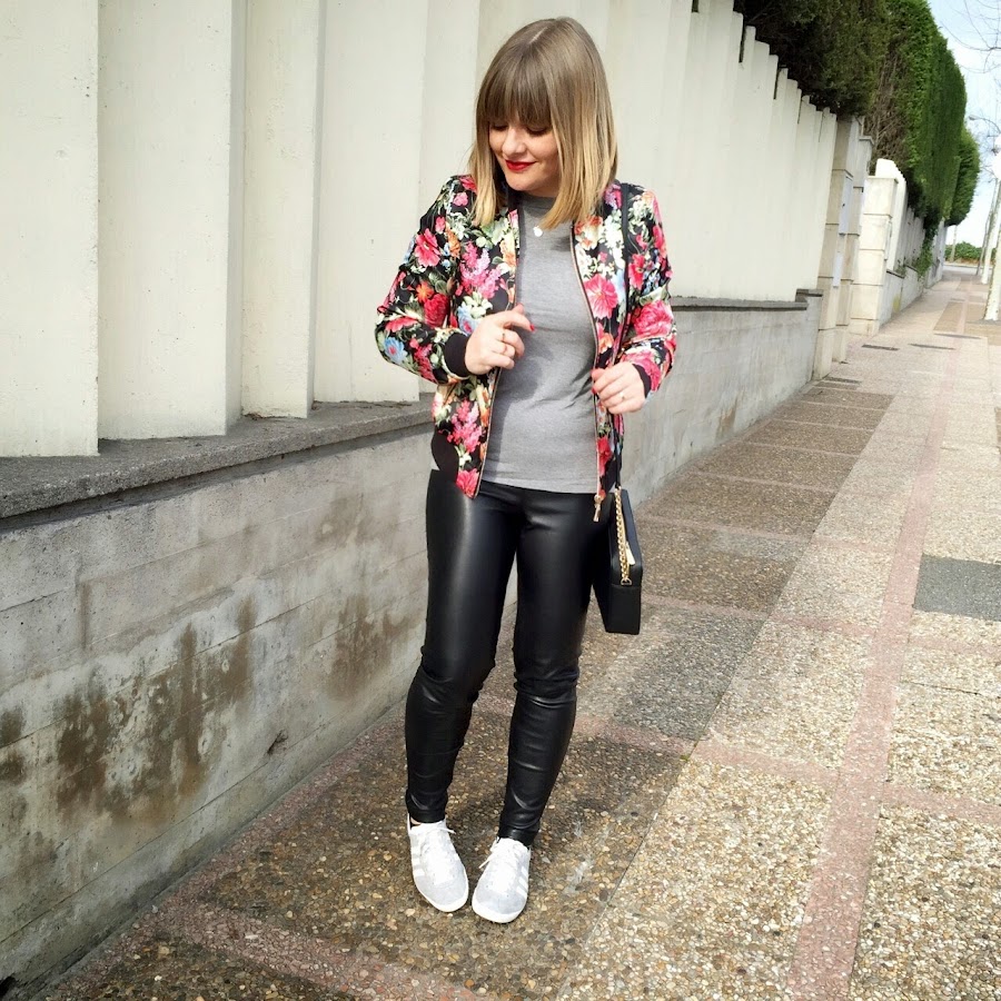 BOMBER: OXYGENE CAMISETA: ZARA. LEGGINS: ZARA. ZAPATILLAS: ADIDAS GAZELLE.