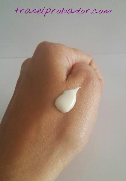 Es una crema muy fluida y me gusta lo rápido que se absorbe. El único problema que podría sacarle es que si aplicamos más cantidad de la cuenta deja un velo blanco que se nota bastante, por lo que como recomendación os diría que aplicaseis el producto poco a poco para evitar que nuestra piel se quede blanquecina.