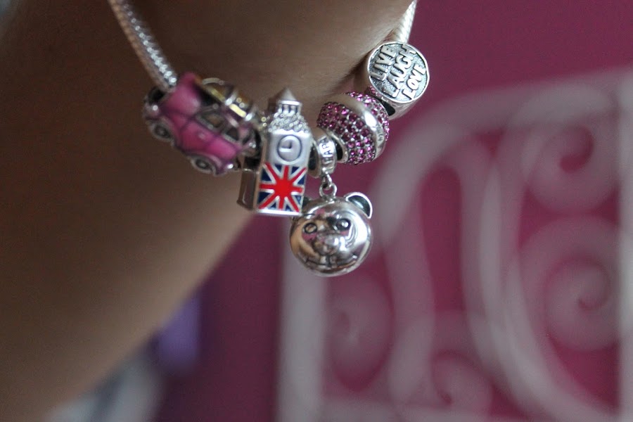 He elegido una bolita con swarosvkis rosas, que tiene grabado el mes de mi nacimiento, Julio. Aparte de que es mi mes de nacimiento, las mejores cosas (este año) me han pasado en Julio, y no solo es mi mes. Encima el color de la bolita, es mi color, por lo que no podría encajar mejor. Lo segundo es un charm con el mensaje de "LIVE, LAUGH, LOVE" tampoco tiene mucho significado, solo que es una buena filosofía de vida. Otro de ellos, es un coche rosa, representa los viajes que he hecho, los que me gustaría hacer, todas las cosas que me quedan por hacer y todos los sitios y paises que me quedan por visitar.