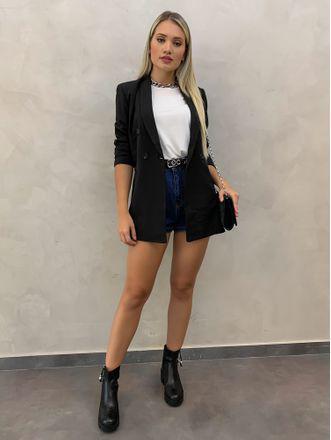Usa blazers largos, es la siguiente de las formas de combinar un blazer con short para verte elegante que te recomendamos ampliamente. Sin duda, los blazers largos no solamente son perfectos para estilizar al máximo una silueta.Complementa blazers con short de vini piel
