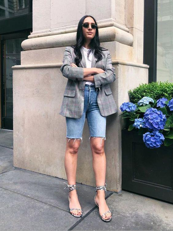 Formas de combinar un blazer con short para verte elegante: Blazer con shorts estilo bermudas