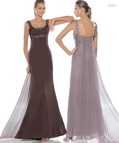 Traje o vestido de telas nobles, con bordados discretos, en crépe, seda, raso, encajes, shantung, para las damas.Ropa de Gala o fiesta: