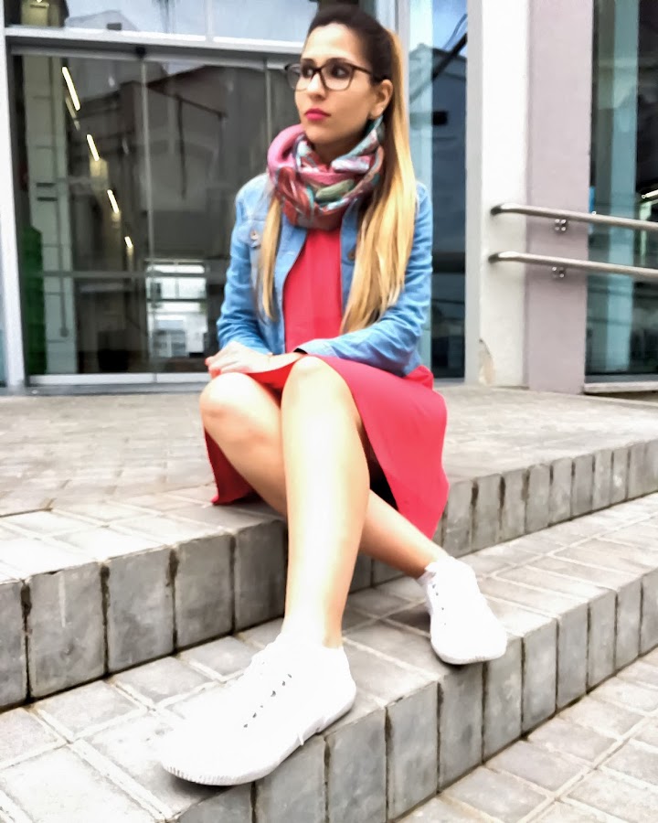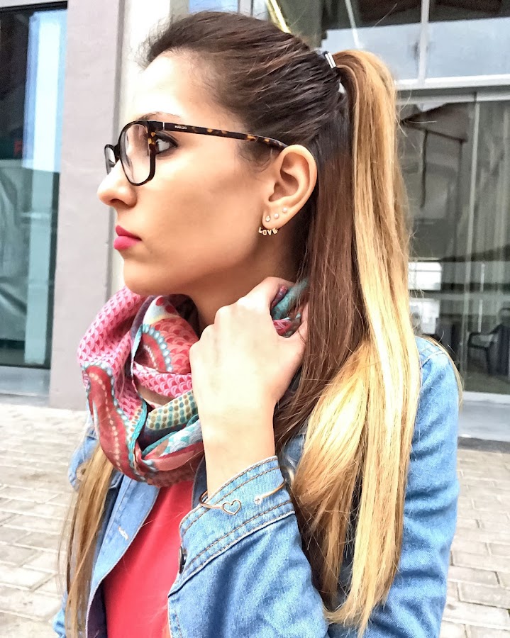 Lo he combinado con mis bambas blancas, una cazadora vaquera, y unos complementos muy originales, como el pañuelo haciendo juego, mi pulsera de corazón y unos pendientes con mucho LOVE!!