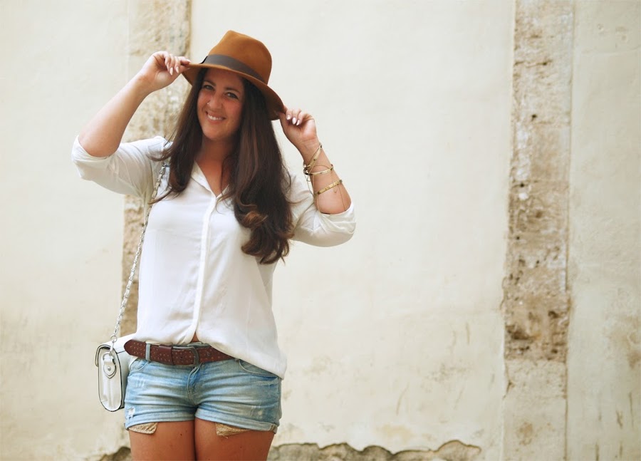 Good morning and happy start to the week! Today I return with a proposal which I like, how to wear basic clothes in a look that works perfectly, at least for my taste. A white shirt is basic in any wardrobe and I use them a lot, a denim short and my favorite complement, the hat! What do you think? Do you like this kind of looks?