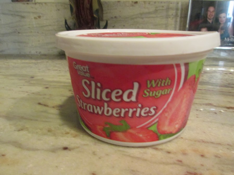 Fresas una taza Puedes agregar de las que vienen endulzadas o de lo contrario limpias bien las fresas las desinfectas y le agregas azucar al gusto