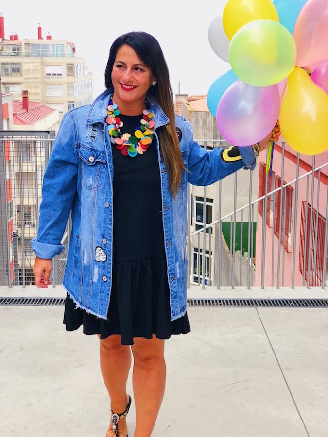 En esta ocasión la combiné con vestido negro y maxi collar de colores, pero es una prenda posible 100% con cualquier look.