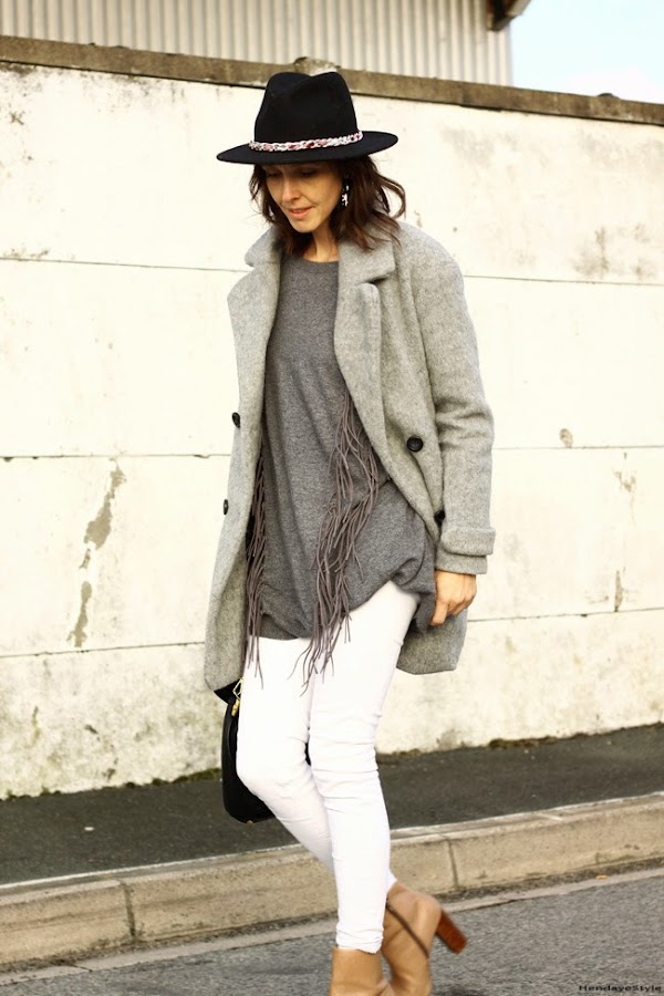 Gris y blanco, una mezcla que no falla nunca, y para mi, la mejor forma de combinar unos jeans blancos en invierno. En este caso, con este jersey de flecos que tanto os gustó el otro día cuando lo publiqué en Instagram. También podéis ver mi abrigo gris, ese que buscaba en rebajas y he encontrado, "Bonito y Barato" (el bueno creo que me lo voy a ahorrar, presiento que le van a salir bolas en un mes...). Por cierto, han ampliado la promoción, podéis disfrutar de un 15% de descuento en todos los artículos de Daniel Wellington (Aquí) introduciendo el código "hendayestyle" hasta el 15 de marzo!