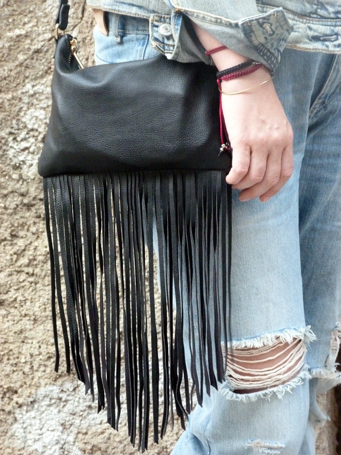 El bolso de flecos es una compra genial que hice en H&M lo elegí en negro porque da un toque diferente y además ya tengo uno en marrón ;P, ¡anima tus looks boho de ésta temporada con flecos! aunque a mi me gusta mezclarlo con looks diferentes, el top rosa bebé de estilo más elegante dulcifica el outfit,¿ya os habéis hecho con vuestro bolso de flecos?
