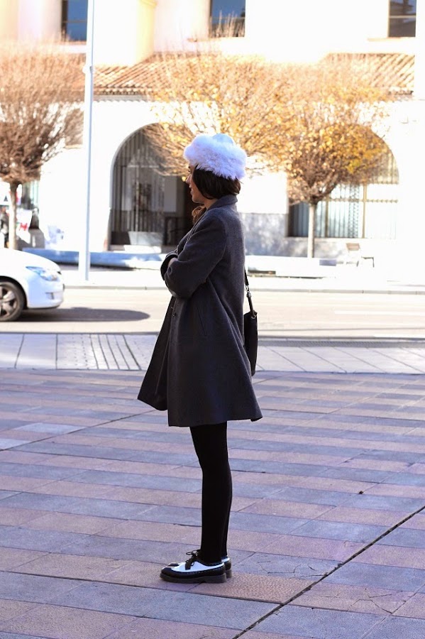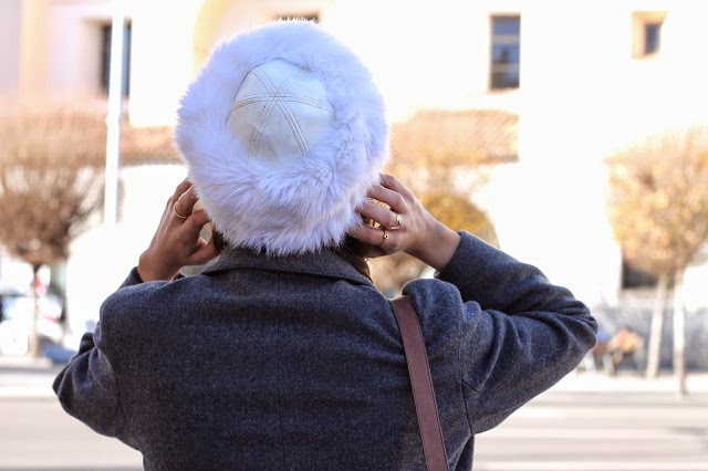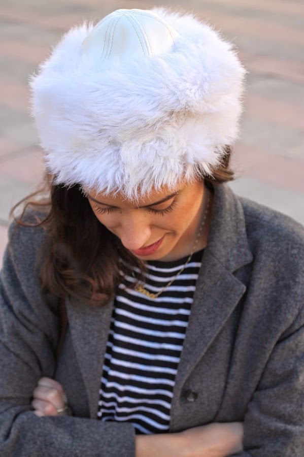 El otro día vino mi amiga Susana a hacerme una visita al trabajo (tengo que contaros cositas interesantes que han pasado en Dorado Vintage), no estaba previsto y aprovechamos para hacernos fotos, así que cogí este gorrito de pelo de la estantería donde lucen todos los de la tienda para inmortalizarlo, ya que aún no estaba subido a la web. Realmente llevaba el de lana que os mostré en el último post, pero me pareció que quedaba muy bien con el look que llevaba.