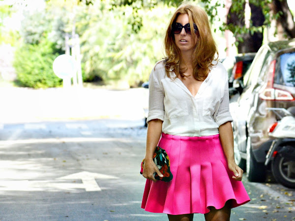 There´re some colours capable to transform an outfit in something full of energy and optimism. Fuchsia is one of these colours. I´ve shown you this skirt on the blog twice (Neoprene skirt and Color block Vol II). I love its shape and the neoprene fabric is totally singular. In the other posts I combined the skirt with color block but this time I wanted to show you that it looks good with a simple basic shirt as well.