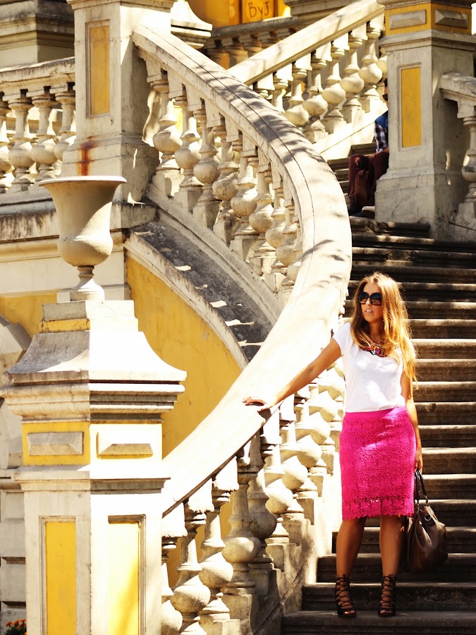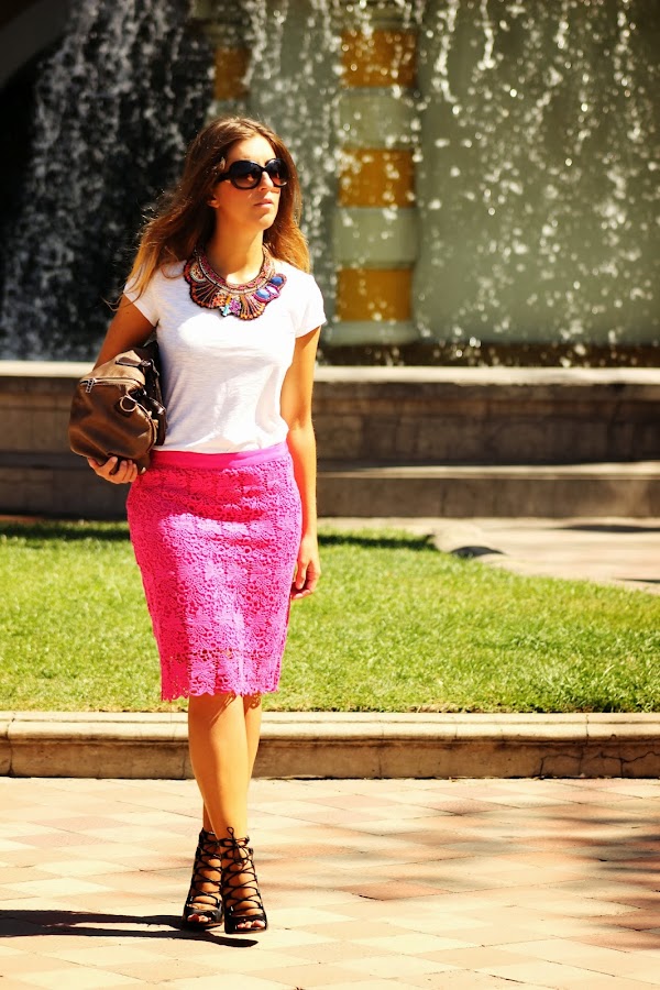 Skirt: Cacharel / T-Shirt: H&M / Heels: Zara / Bag: Misako / Necklace: SuiteBlanco