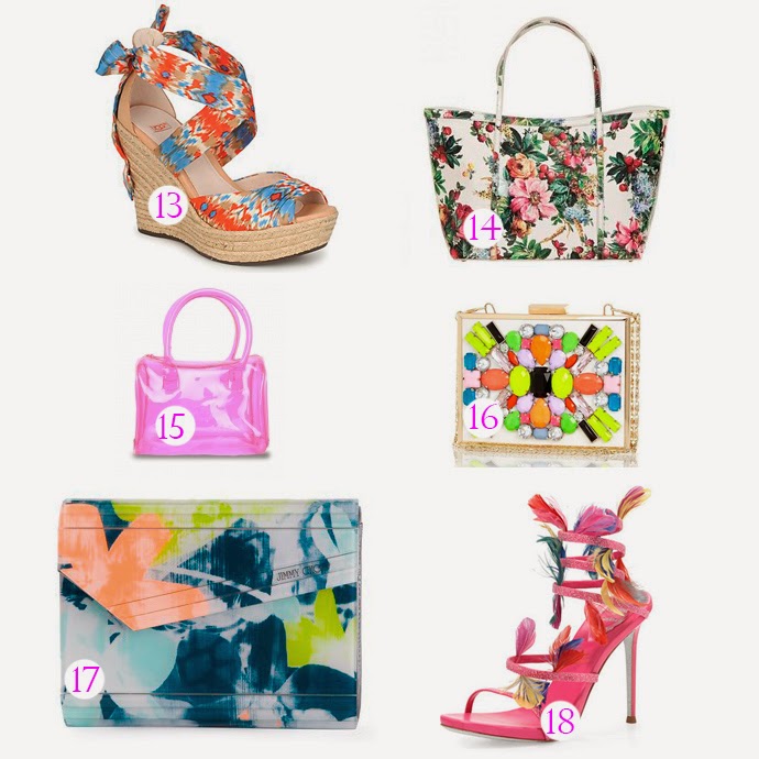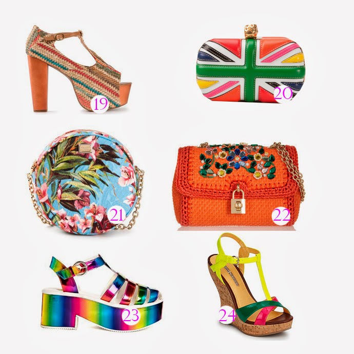 Accessories are always the clue: floral bags and colorful wedges: infallible
