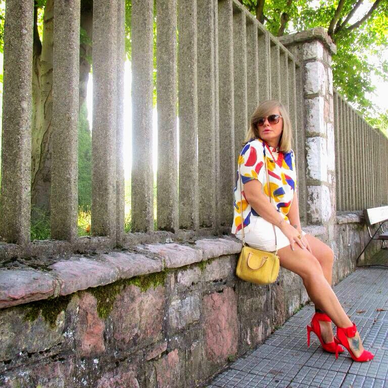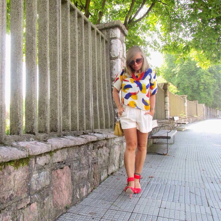 Opté por combinarla con unos shorts del mismo tono base de la blusa y así poder utilizar colores en los complementos, eso sí, siempre dentro de las tonalidades del estampado.