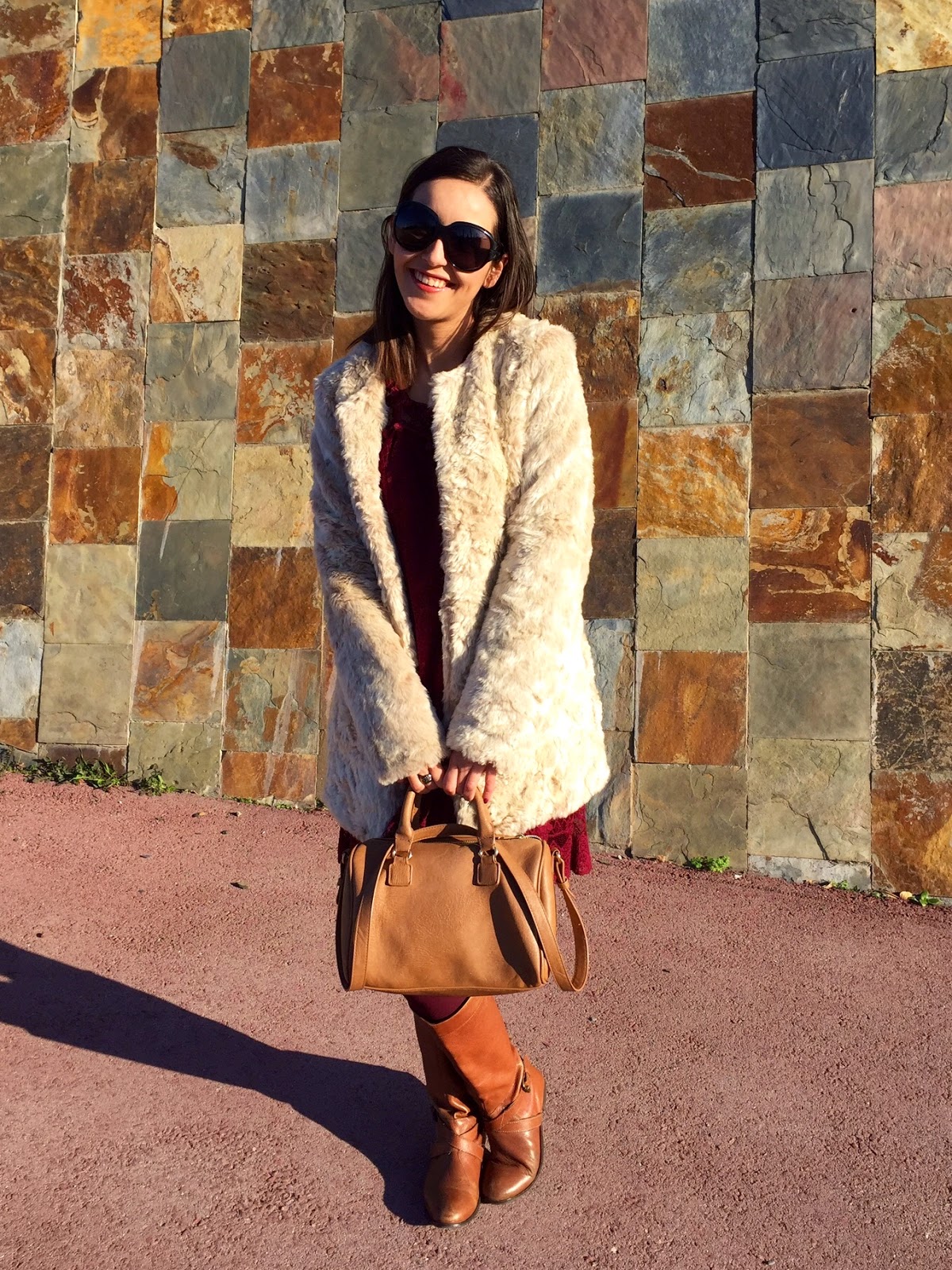Good night babies! We are one step to the weekend and I"m waiting with anxious, because I "ll have a dinner that I have been waiting lot of time. I haven"t showed us this coat yet that I bought in the Black Friday. In the outfit of the day, I wore it with a burgundy boho dress and my brown boots. A perfect outfit to wear at the weekend.