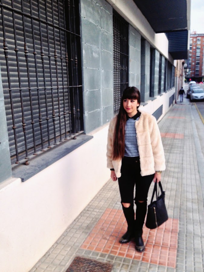 Coat: Vintage // Sweater: Lefties // Ripped Jeans: Stradivarius + DIY // Boots: Blanco // Bag: (?)