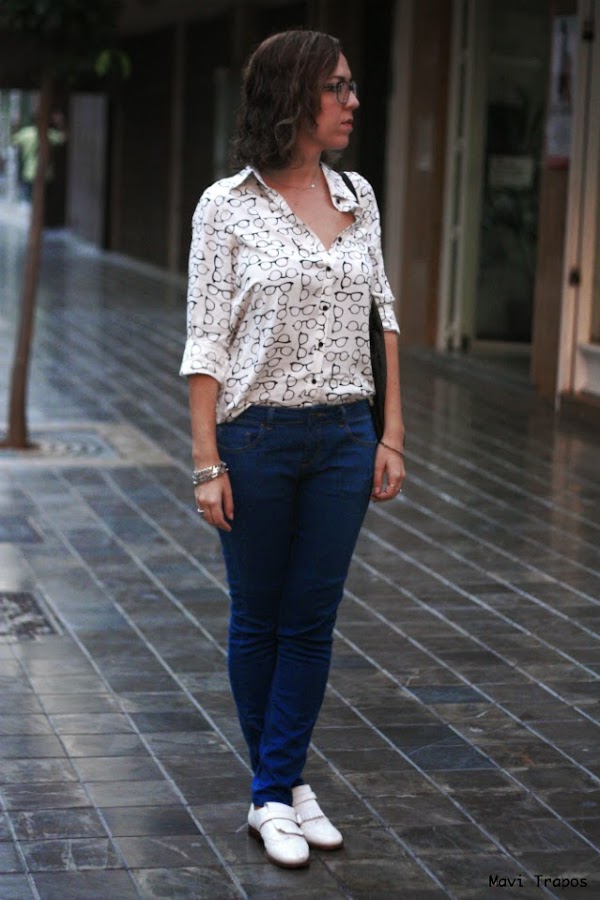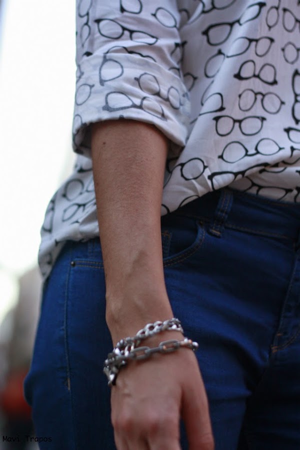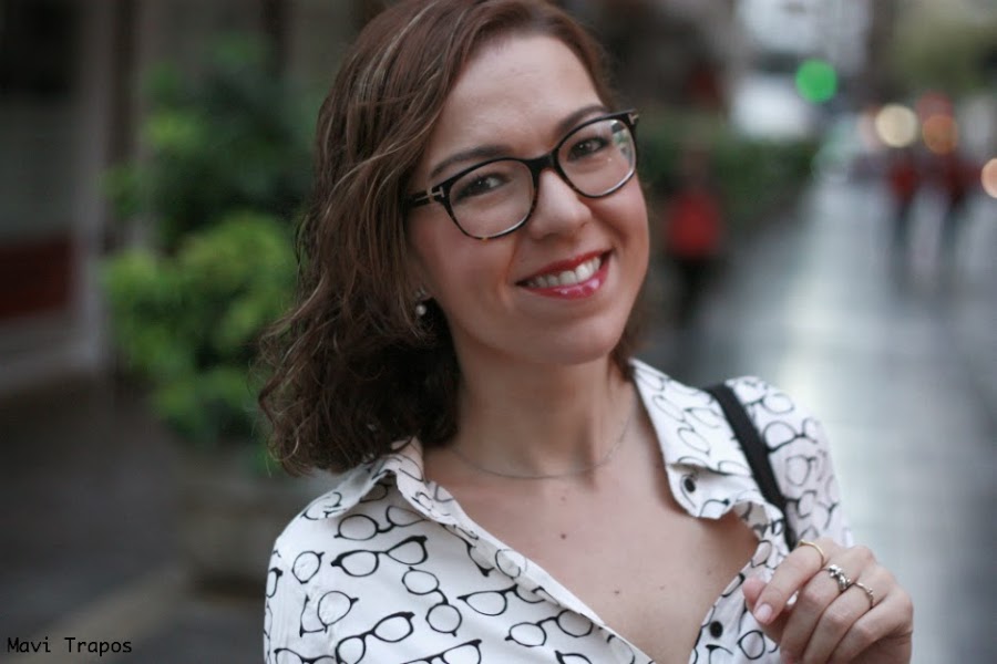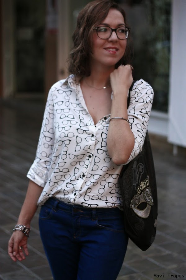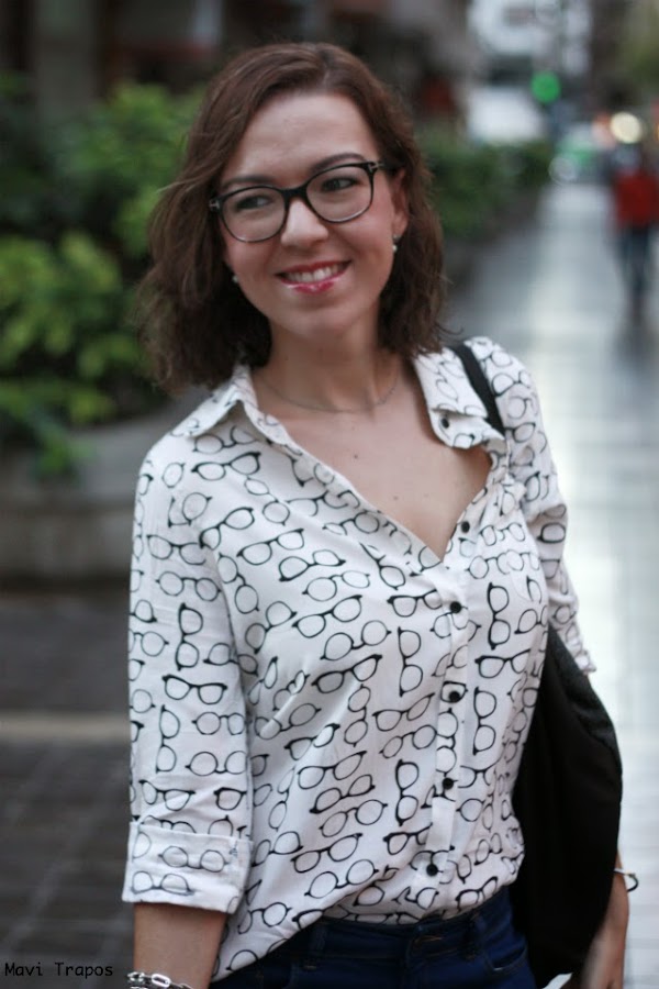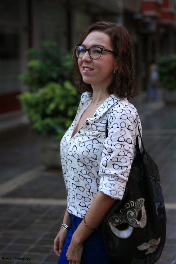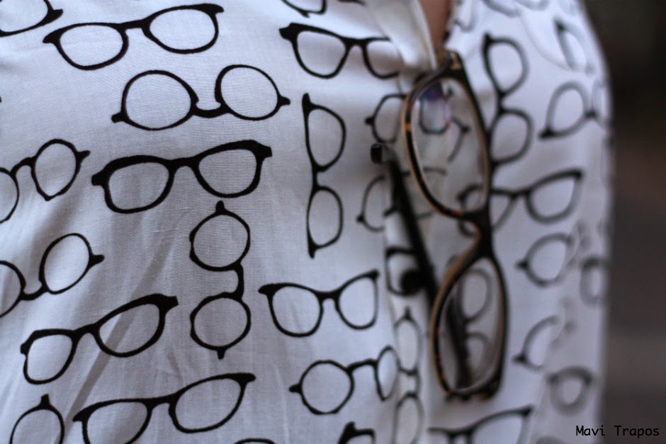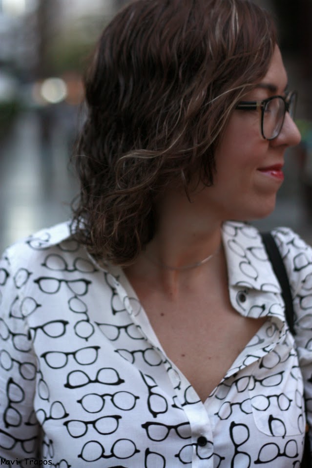 No soy muy de camisas... lisas, casi todas las que llevo suelen ser o estampadas o con algún detalle en el cuello, en los botones... pero esta me hizo mucha gracia, supongo que por que de siempre me han gustado las "gafa-pasta" aunque generalmente las uso para trabajar, alguna vez más las habéis visto por aquí. Últimamente estoy pensando en cambiarlas, me apetece alguna gafa más arriesgada en forma o color ¿alguna sugerencia?Sobre el look, pues algo cómodo que para ir de compras y a tomar un vinito y unas tapas antes de la cena, es lo mejor.
