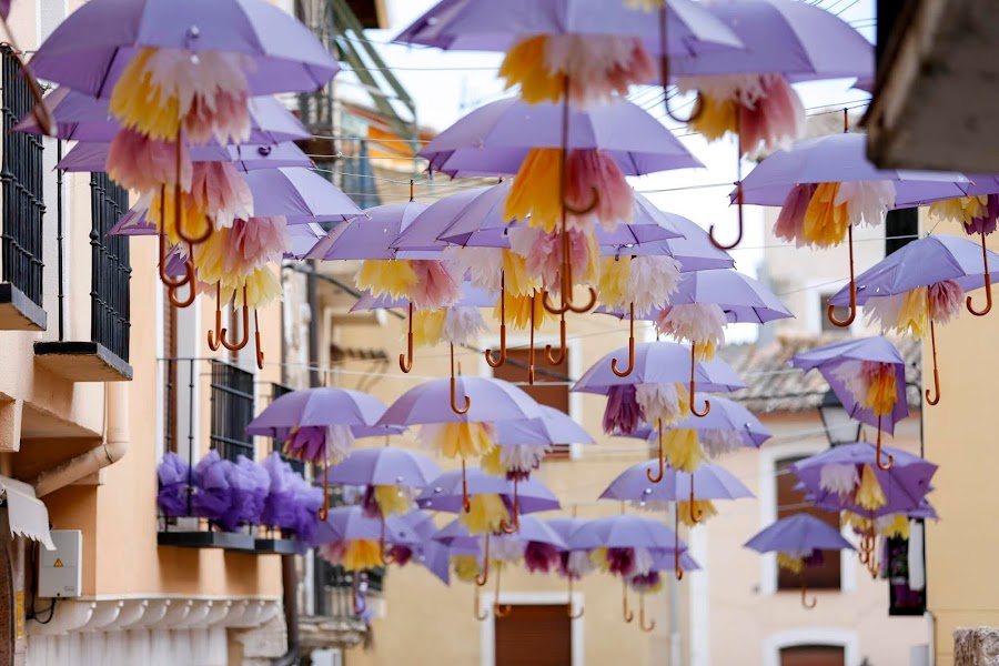 Pero lo mejor de este lugar es el pueblo y sus gentes. Es impresionante cómo todos los habitantes de Brihuega se implican en el festival. Todo el pueblo y sus negocios está decorado con motivos de color morado y cada cosa que hay está, de algún modo, relacionada con la lavanda. Vas a un café y te sirven limonada de lavanda, pintan alpargatas con ilustraciones de lavanda, en cada esquina puedes comprar esencias de lavanda...