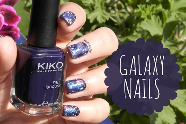 Hay mil posibilidades a la hora de hacer unas galaxy nails, desde ejemplos más clásicos como los que veis en la foto, a combinaciones en tonos pastel. Ahora bien, toda manicura tipo galaxy nail que se precie debe comenzar por una base oscura. En mi caso he recurrido a este bonito tono de KIKO, me vais a tener que perdonar pero lo tengo en mi casa así que... no puedo deciros su número :(
