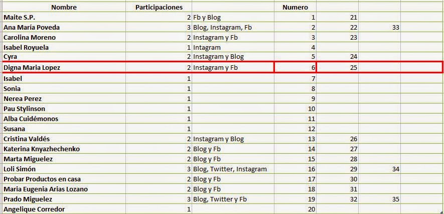 Ya hay ganadora del sorteo, asi que os dejo las participaciones y el número ganador, generado con Ramdon.org