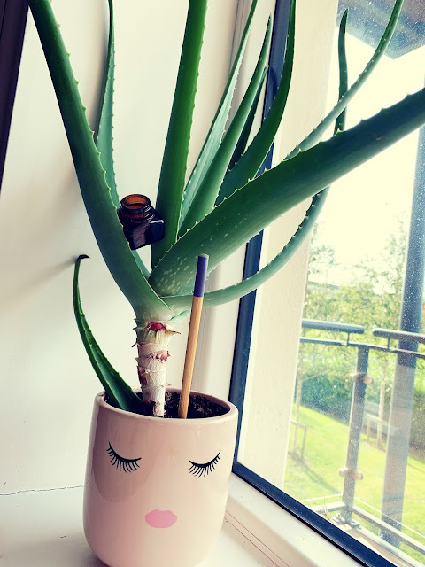al ser una planta que lleva 90% agua y la retiene en forma de gel nos ayuda a mantener esa agua por mas tiempo en el rostro al mismo tiempo que penetra el agua repara las manchas causas por Acne y al dejar una piel limpia y con suficiente hidratación, ayuda a que el acne no aparezco por nuestro rostro.