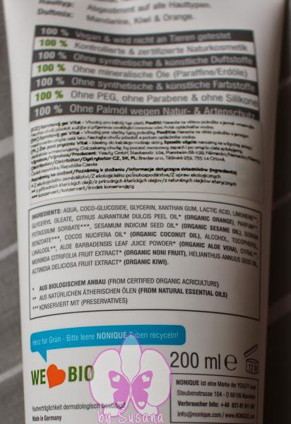 Hace poco os hice un post sobre crema de manos Nonique, esa crema de manos fue mi primer contacto con la marca Nonique, una crema de cosmética natural y Bio que me llamó mucho la atención y por ello, he animé a pedirme otro de sus productos: este gel de ducha Vital.