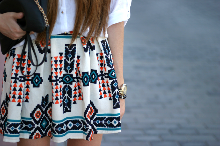 Hoy os muestro una falda con estampado geométrico. Me llamó la atención sus colores y formas. Es muy alegre y muy ponible para este verano. ¿Os gusta?