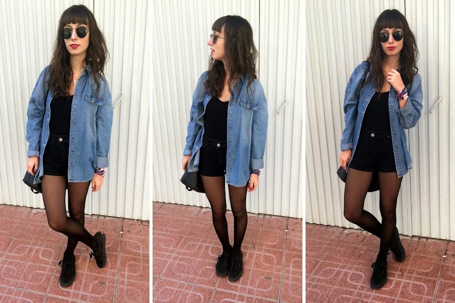 How have you gone for the weekend? I hope fine and if it hasn"t gone well, and is over and begin a new week with courage and enthusiasm. To begin this week I leave a look last week, taking advantage of spring days were over and I could release those black shorts that cost me nothing in these latest cuts and I think I"ll give much use from now. As you know, I love the total black. Additionally, this look I ever wear glasses "Giant vintage" I told you. Would you have taken a look at the page? What you seem it? If you have not seen your page, you can see it by clicking Here. I see you back here soon! Cheer for the week!