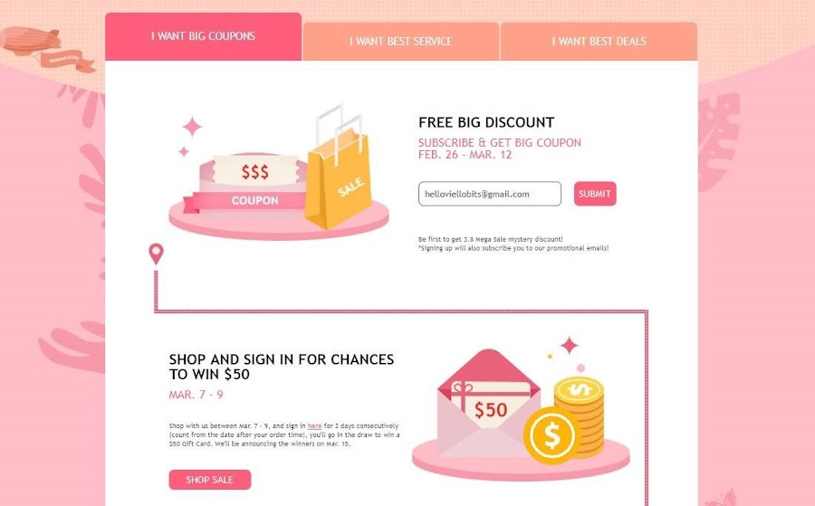 With this latest promotion, Rosegal is offering Discounts, Free Shipping, After-Sales Service, and New & Old Member Deals. Lots of surprises are in store for Rosegal fans and customers like the SHOP AND SIGN IN FOR CHANCES TO WIN $50 which will ran from March 7-9, 2018. All you have to do is shop at Rosegal between Mar. 7 - 9, and sign in for 3 days consecutively (count from the date after your order time), youll go in the draw to win a $50 Gift Card. And the winners will be announced on Mar. 15.