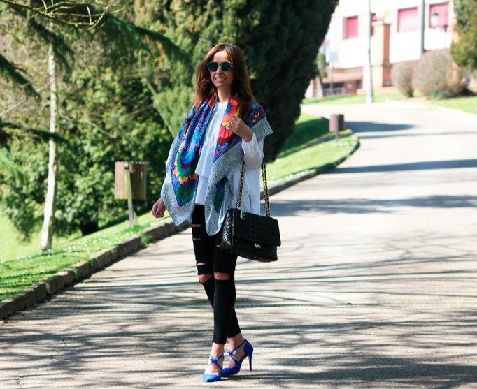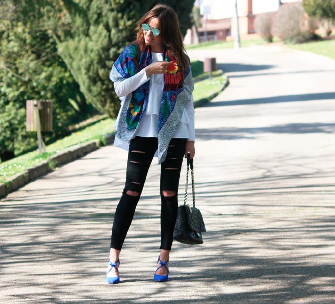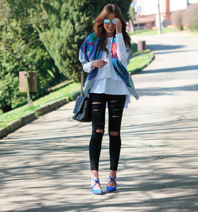 La combinación estaba claro, negro el gran comodín por excelencia al que cada día recurro más y esta blusa repleta de volantes que me trae de cabeza y vais a cansar de verla si cesar, el toque final este pañuelo que no puede casar mejor. ¿Qué os parece el resultado?