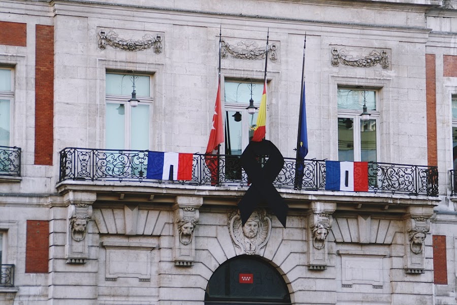 Como el horror de París había sucedido el día anterior, en el Ayuntamiento tenían el lazo de luto en honor de las víctimas del terrorismo. Un bonito detalle.