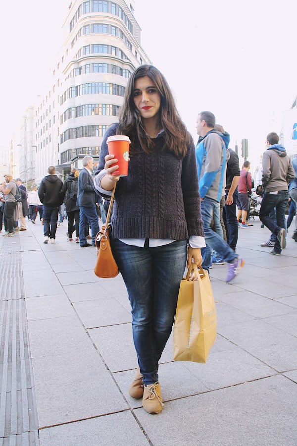 Hace unos días fui a Madrid con Miguel, Montse y Juan y no paré hasta arrastrarles al Starbucks de Gran Vía para pedirme mi querido ginger de la temporada. Pensaréis que es muy de paleta, pero, ¿qué queréis? en Salamanca no tenemos Starbucks ni gingerbread latte (sniff). Además, Montse ya nos había arrastrado a Primark de Gran Vía, que fue lo primero que hicimos al poner un pie en la capital, así que... Btw, Montse no se compró lo que quería, y yo, que no quería comprar, mi cogí un amoroso jerseycito de renos.